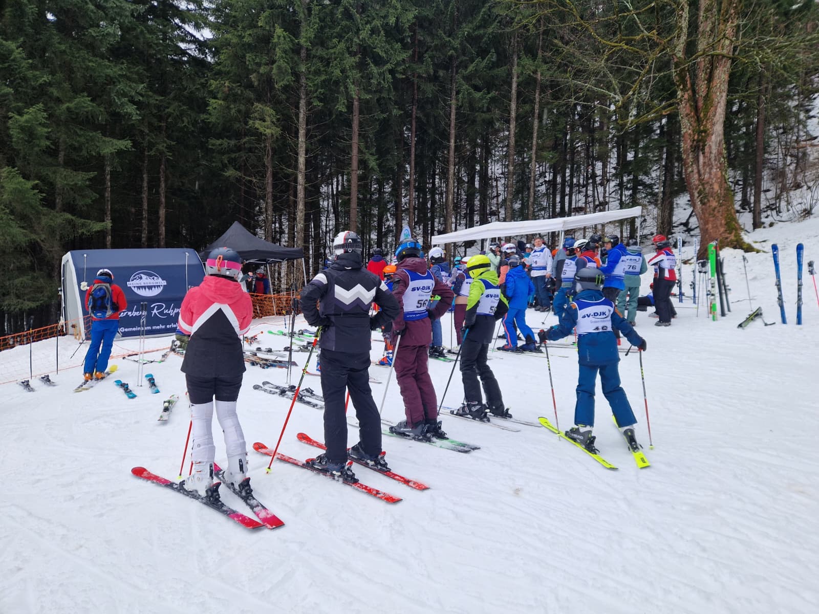 Trotz leichten Nieselregens hatten sich 94 Athlet*innen um 9 Uhr am Unternberg eingefunden, um sich anzumelden. Die Rennleibchen wurden dabei von der Abteilung Ski des SV-DJK Kolbermoor (Michael Taylor) zur Verfügung gestellt.